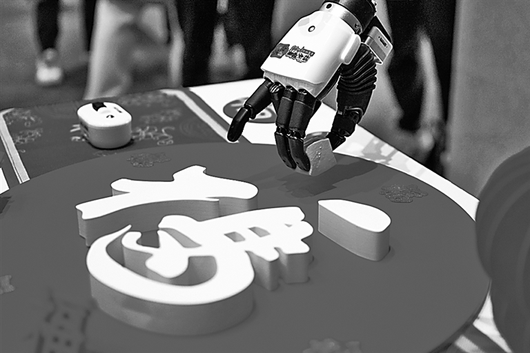 人形机器人抓取豆腐。 新华社发